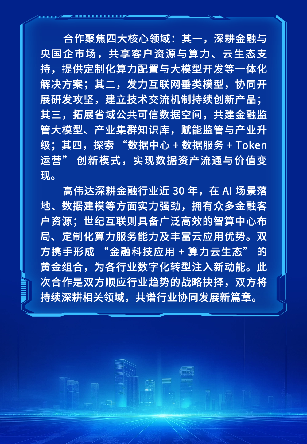 高伟达与世纪互联战略合作 共拓 AI + 算力 + 数据服务新生态