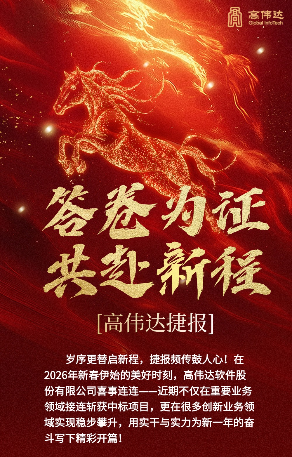 岁序更替启新程,捷报频传鼓人心!在2026年新春伊始的美好时刻,高伟达软件股份有限公司喜事连连——近期不仅在重要业务领域接连斩获中标项目,更在很多创新业务领域实现稳步攀升,用实干与实力为新一年的奋斗写下精彩开篇!
